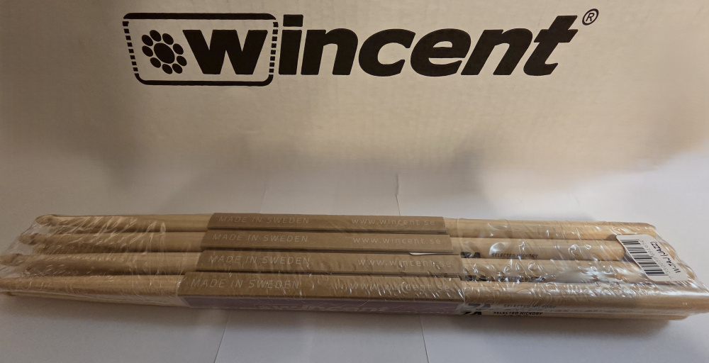 Wincent trommestikker er gode trommestikker som produseres i flere varianter innenfor standard kategorier som 7A-5A-5B osv.. Stikkene har knall balanse og føles veldig god i hånden pga den unike overflatebehandlingen med voksbeskyttelse. Dette er ett rimelig og meget godt alternativ til de større merkene. I tillegg produseres stikkene i Norden, noe som gjør tilgangen meget kjapp! Skaffer alle varianter i løpet av ett par-tre dager :)
