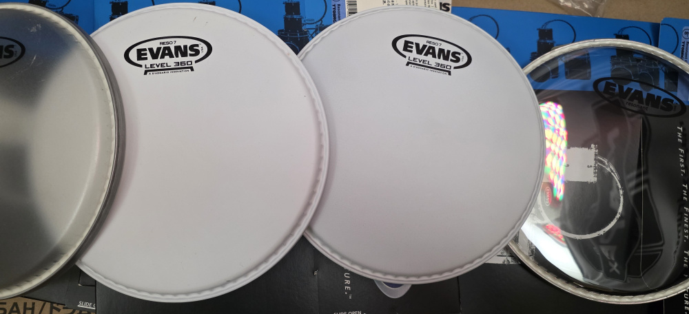 Har du ett trommesett /øvingssett som sårt trenger nye skinn? Her har du muligheten til å skaffe (nesten) komplett sett ubrukte skinn.